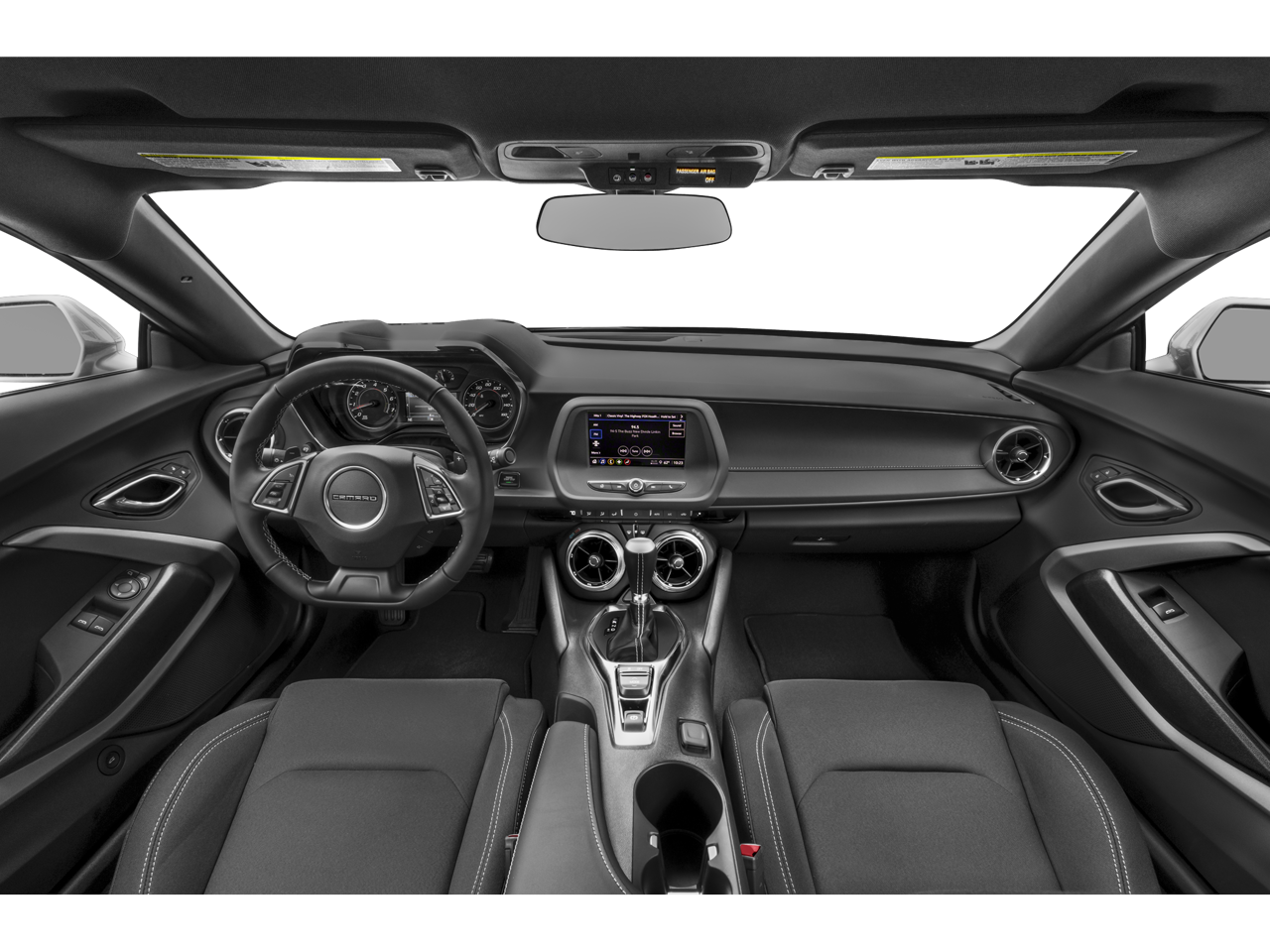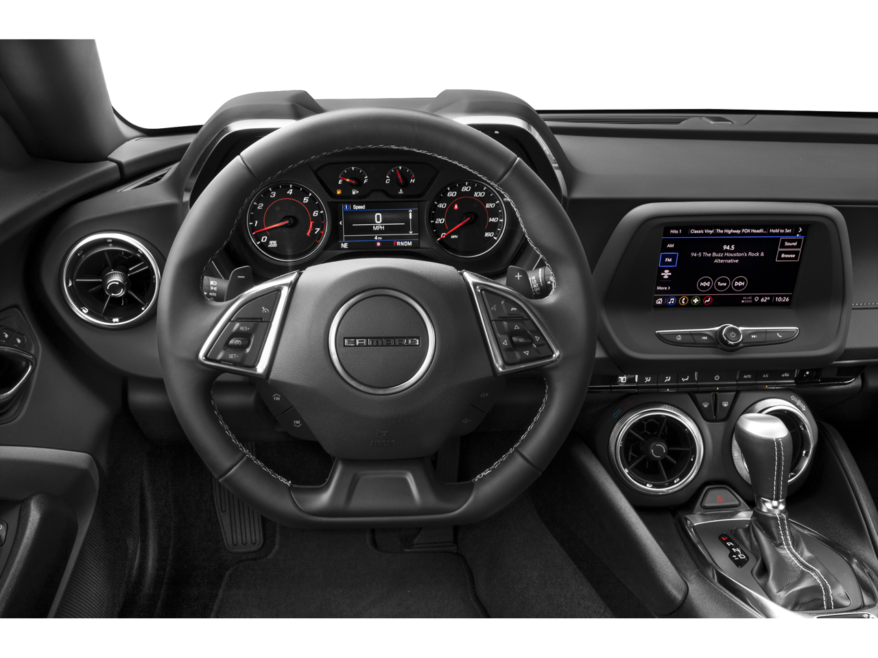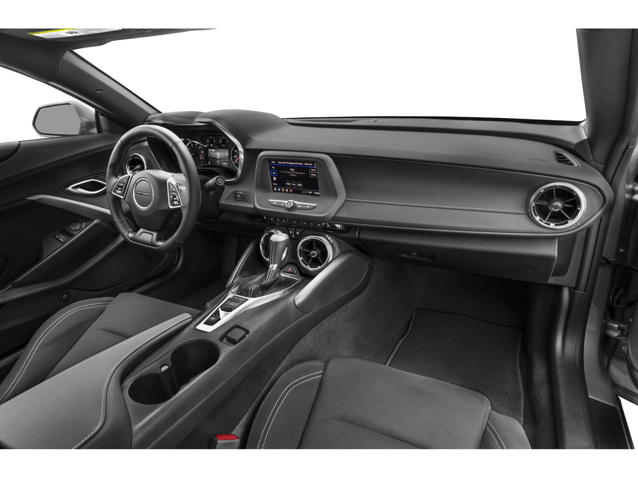 Chevrolets infotainment system includes touchscreen controls, smartphone integration, and driver-assist features that make this high-performance coupe practical enough for everyday driving.